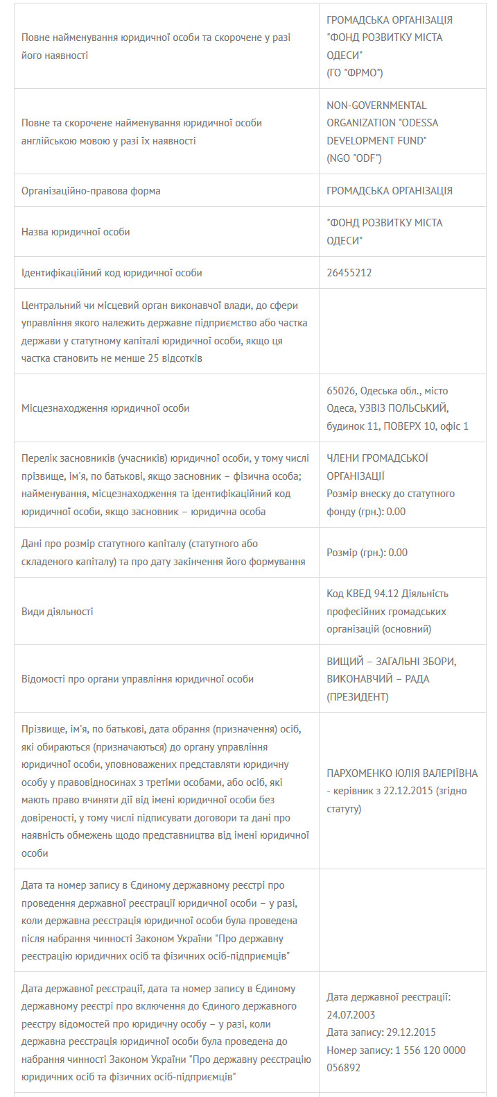Другой пример коррупции, который еще остается вне поля зрения правоохранителей. До недавнего времени в департаменте муниципальной безопасности начальником отдела взаимодействия с правоохранительными органами, общественными формированиями и охранными структурами числилась Пархоменко Юлия Валерьевна, которая в нарушение Закона Украины «О предотвращении коррупции», совмещала свою должность в департаменте с должностью президента общественной организации «Фонд развития города Одессы», кем является до сих пор.