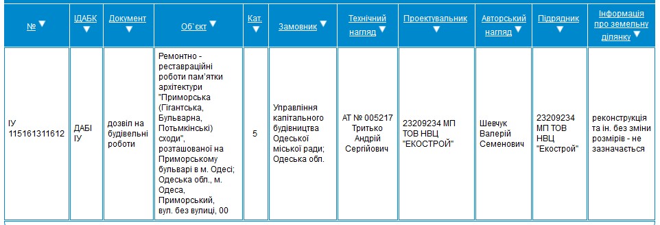 Во-вторых, Потемкинская лестница является памятником архитектуры национального значения, поэтому любые строительные работы как на лестнице, так и в ее охранной зоне должны выполняться исключительно на основании разрешения на строительные работы 5-й категории сложности при обязательном согласовании Министерства культуры Украины.