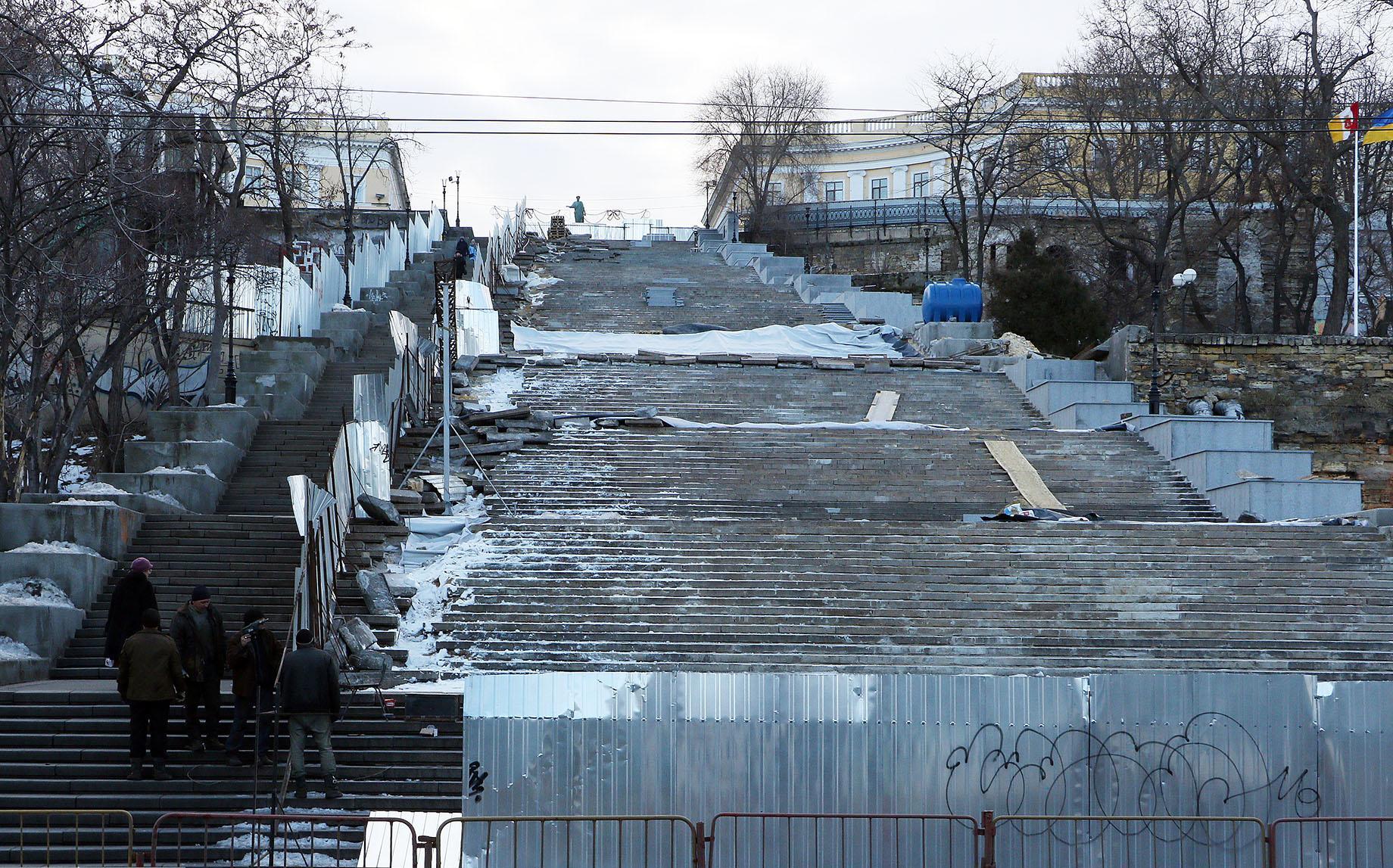 Как Вы помните, реставрация Потемкинской лестницы началась в конце мая 2016 года. Так как это было в разгар туристического сезона и во время активных антитрухановских протестов в городе, мэр, очевидно боясь имиджевых потерь вследствие закрытия лестницы на реставрацию, он сместил график выполнения работ.